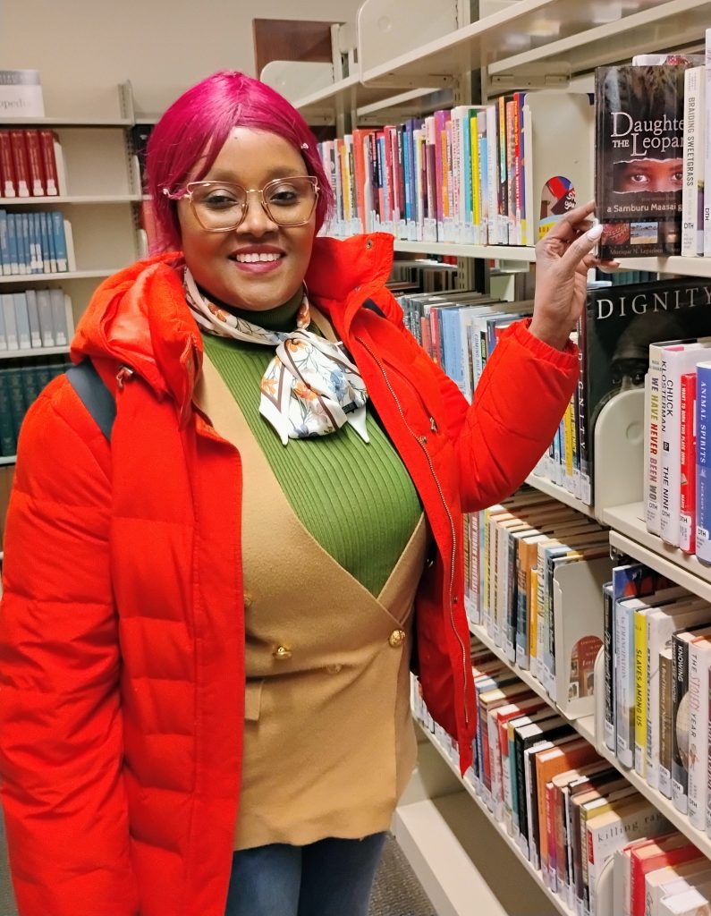In early January Monique again dragged me out from my still-recovering-from-pneumonia sickbed to go visit Daughter of the Leopard at two more Seattle Public Library System branches: Douglass-Truth and Rainier Beach. What a delight!! Well worth masking up and going out for.